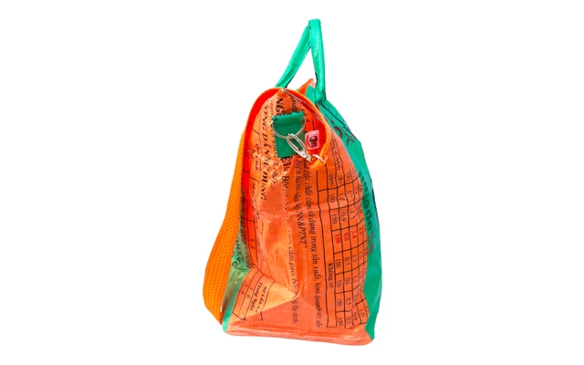 Die Allzwecktragetasche ist nicht nur total praktisch, vielseitig einsetzbar und ein stylischer Hingucker, sondern zusĂ€tzlich komplett aus recycelten Material! Genauso auch der auffĂ€llige orangene Tampenjan Schultergurt, welcher ursprĂŒnglich als Schiffscontainerspanngurt im Hamburger Hafen diente. Er ist sehr widerstandsfĂ€hig, lĂ€sst sich super einfach abnehmen und ist somit auch fĂŒr andere Taschen verwendbar. Durch den Kauf dieser Allzwecktragetasche wird eine langfristige Umweltschonung unterstĂŒtzt und der Lebensunterhalt fĂŒr Menschen in Kambodscha gesichert. Produziert unter strenger Kontrolle der World Fair Trade Organisation. Recyceltes Reissack Material.