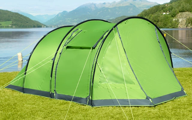 Tunnelzelt mit 3 doppelten EingĂ€ngen (zusĂ€tzliche Moskitogaze-TĂŒren), welche als Sonnendach ausstellbar sind. GegenĂŒberliegende SeiteneingĂ€nge verfĂŒgen ĂŒber zusĂ€tzliche, verschlieĂbare LĂŒftungsfenster. Die Sichtfenster im Eingangsbereich sind von innen blickdicht verschlieĂbar. Die fest eingenĂ€hte Bodenplane sorgt fĂŒr zusĂ€tzlichen Komfort. Schlafkabine mit Moskitogaze-TĂŒr (von innen blickdicht verschlieĂbar) und praktischen Organizern. ZeltlampenaufhĂ€ngung im Dachbereich. Doppelt abgedeckte ReiĂverschlĂŒsse. Von auĂen verschlieĂbare DauerbelĂŒftung hinter der Schlafkabine. Die komfortable Stehhöhe betrĂ€gt 200 cm.