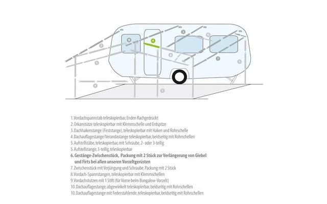 GestĂ€nge-ZwischenstĂŒcke zur VerlĂ€ngerung von Giebel und First bei allen unseren VorzeltgerĂŒsten. Packung mit 2 StĂŒck.
