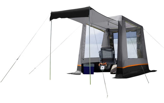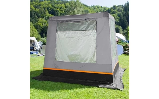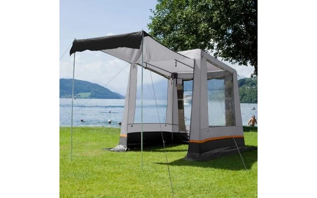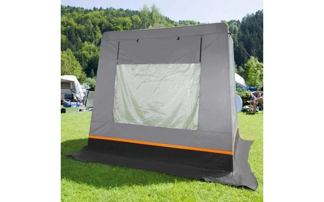 VerschlieĂbare HochentlĂŒftung an der Vorderwand. Eingang als Sonnendach ausstellbar. Moskitogaze-BelĂŒftung an der RĂŒckwand (von auĂen verschlieĂbar). Innen angebrachte Abdeckklappen fĂŒr alle drei Fenster.