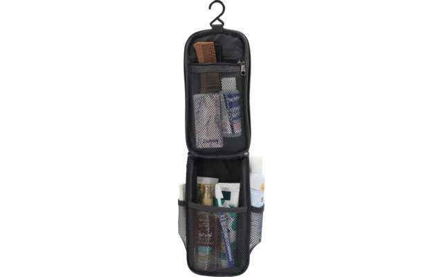 Praktischer Kulturbeutel mit ĂŒbersichtlichem Verstaufach. Ein RV-Fach, eine groĂe Innentasche und zwei AuĂenfĂ€cher. Inkl. Haken zum AufhĂ€ngen.