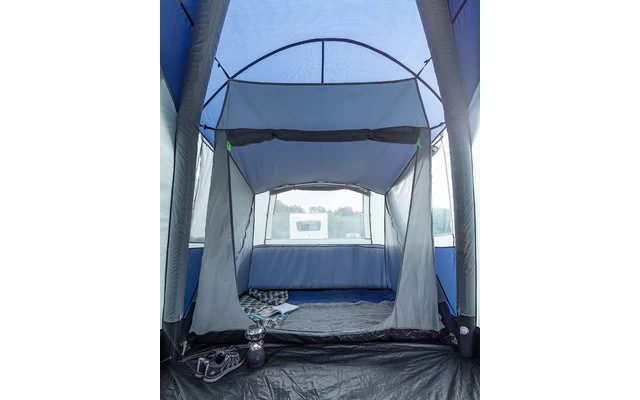 Aufblasbares, komfortables Familienzelt aus hochwertigem Ripstop-Polyester mit viel Platz fĂŒr bis zu 4 Personen. Schneller und unkomplizierter Aufbau Dank aufblasbarem GestĂ€nge. Sechs Fenster (je œ Moskitogaze, œ Klarsichtfolie) sorgen fĂŒr die perfekte WohlfĂŒhlatmosphĂ€re mit ausreichend Lichtzufuhr und Ventilation. Der fest eingenĂ€hte Zeltboden bietet zusĂ€tzlichen Komfort und schĂŒtzt vor Schmutz, NĂ€sse wie auch ungebetenen Tieren. Zudem ĂŒberzeugt das Zelt mit zwei einhĂ€ngbaren Schlafkabinen inklusive Moskitogaze-TĂŒr, welche bei Bedarf zur VergröĂerung des Wohnraums entfernt werden können. Der gerĂ€umige Aufenthaltsraum lĂ€dt zum Verweilen ein und bietet aureichend Platz fĂŒr Ihr Mobiliar.
