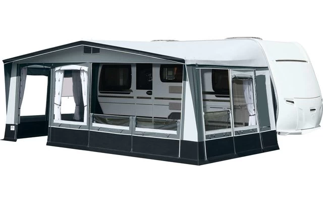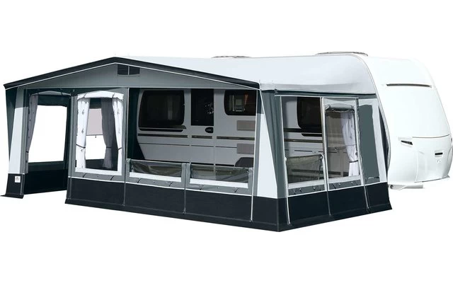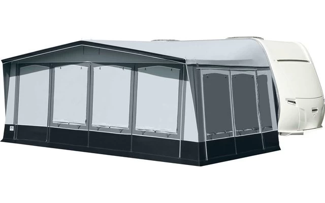 Das Brand Palazzo, bei diesem Saison- und Ganzjahres-Vorzeltmodell kommt fĂŒr das Dach und die SeitenwĂ€nde ein robustes Polychlorid-Material zum Einsatz. Die Vorderwand wird aus atmungsaktivem âTen Cateâ-Gewebe gefertigt. Frei wĂ€hlbare Eingangsposition durch die Elementtechnik der Vorderwand. FĂŒr die SeitenwĂ€nde gibt es insgesamt vier Fensterelemente: zwei Folienfenster und zwei LĂŒftungsfenster. Diese vier Elemente können nach Wunsch positioniert werden. Fensterklappen, Wetterschutzabdeckung der ReiĂverschlĂŒsse, eine verschlieĂbare HochentlĂŒftung und ein 28 mm StahlrohrgestĂ€nge mit PowerGrip und VordachverstĂ€rkung komplettieren die umfangreiche Serienausstattung.
