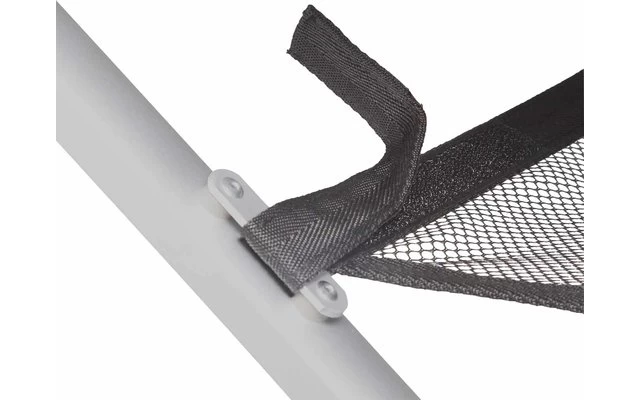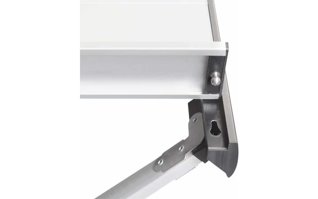 Aluminiumtisch mit Rollplatte und speziellem, einfach zu montierendem Klapprahmen. Rolltischplatte mit silber eloxierten Lamellen (Gapless-System). Sehr stabiler Rahmen aus Aluminium-Vierkantrohren und zentraler Stabilisierungsstange. Mit praktischer Netzablage und Transporttasche (100 % Polyester) mit 2 separaten FĂ€chern.
