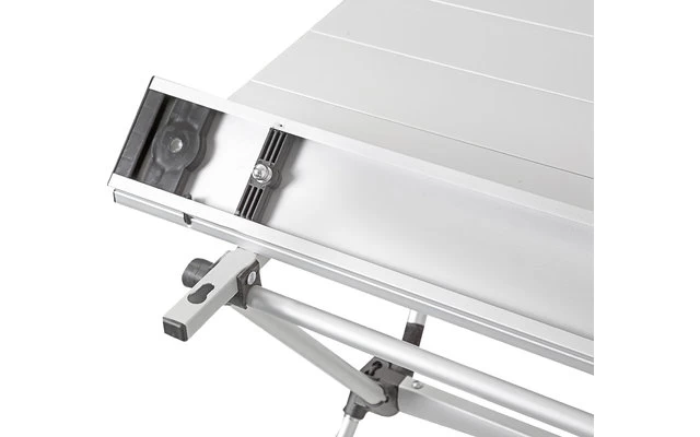 Zusammenklappbarer AuĂentisch mit ultraleichtem Aluminiumgestell und rollbarer Tischplatte. VoÌllig kunststofffreie Konstruktion ohne PlastikeinsaÌtze oder -verbinder. Alle Rohre, die den Rahmen bilden, sind schockgesichert, um den Verlust von Einzelteilen zu vermeiden. Die Montage erfolgt schnell, sehr einfach und ohne Werkzeug. Sehr gutes PackmaĂ fuÌr eine problemlose Lagerung. Wird mit einer praktischen Tragetasche geliefert.