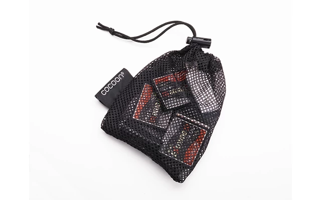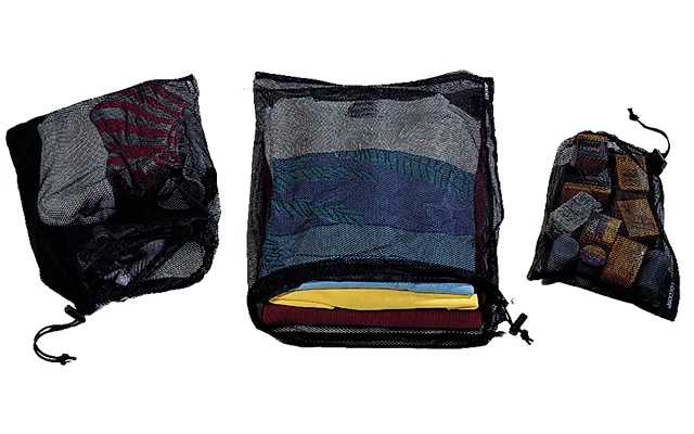 Set aus vier Netzbeuteln zum Ordnen von Reiseutensilien in Reisetaschen, Koffern und RucksÀcken.