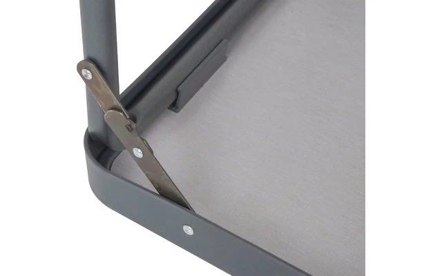 Niedriger Aluminium Beistelltisch mit epoxybeschichtetem Gestell und dunkelgrauer Tischplatte.