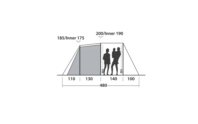 - Familientaugliches Tunnelzelt mit groĂem Aufenthaltsbereich