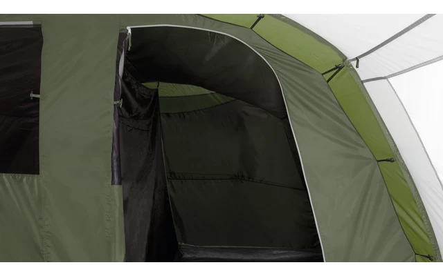 Im Innenzelt des Easy Camp Huntsville 600 mit zwei TĂŒren und Trennvorhang finden 6 Personen Platz. Robuste, vorgeformte Fiberglasstangen sorgen im Wohnraum des Tunnelzelts mit drei Fenstern, SeitentĂŒr sowie abgedeckten LĂŒftungsöffnungen an Vorder- und RĂŒckseite fĂŒr Stehhöhe. Der aufrollbare Zeltboden im Wohnbereich kann zum Reinigen einfach entfernt werden.