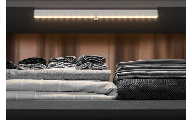Mit 150 lm und warmweiĂem Licht (3000 K), ideal fĂŒr SchrĂ€nke, Vitrinen, Schubladen, Korridore und Garagen.