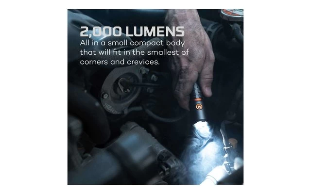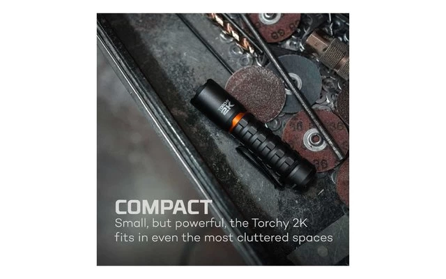 Die kompakte LED-Taschenlampe TORCHY 2K bringt es trotz ihrer geringen GröĂe auf beeindruckende 2000 Lumen. 5 unterschiedliche Modi mit Smart Power Control werden ĂŒber einen Bedienschalter einfach aktiviert und durchgeschaltet. Ein durchgĂ€ngiges Leuchten des Bedienschalters zeigt an, dass der Akku noch ĂŒber 25% seiner Leistung aufweist, wĂ€hrend regelmĂ€Ăiges Blinken eine Leistung unter 25% signalisiert. Der integrierte Akku wird ĂŒber eine praktische USB-Docking-Station geladen. Ein MagnetfuĂ sowie ein abziehbarer Taschenclip erweitern die Einsatzmöglichkeiten.