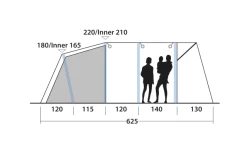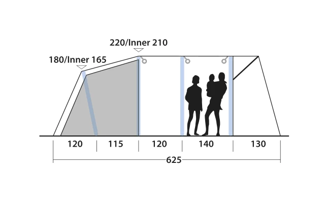 - Die zuverlĂ€ssigen und benutzerfreundlichen Ventile zum Aufblasen/Ablassen der Luft sind gut zugĂ€nglich am Ăberzelt angebracht