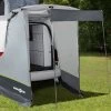 Schmutzblende und herausnehmbarer Zeltboden sorgen fĂŒr einen sauberen, zugfreien Zugang zwischen Vorzelt und Fahrzeug