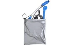 Inklusive Tauchpumpe mit 5 m Kabel, 2 m Schlauch, Duschkopf, Ein-/Ausschalter, faltbarer Eimer (auch als Aufbewahrungstasche verwendbar), Zubehör zum AufhÀngen.