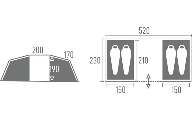 Der Wohnbereich des Zeltes ist mit 4,6 mÂČ sehr gerĂ€umig und durch die Höhe von 190 cm kann man darin sogar problemlos aufrecht stehen. Die eingenĂ€hte Bodenplane sorgt dafĂŒr, dass auch krabbelndes Ungeziefer drauĂen bleibt und Deine FĂŒĂe, sowie Deine AusrĂŒstung trocken bleiben. An der Seite des Zeltes ist ein groĂes, abdeckbares Fenster zu finden, welches fĂŒr optimale LichtverhĂ€ltnisse beim Aufenthalt im Inneren sorgt. Der Eingang ist mit einer Gaze-DoppeltĂŒr versehen, sodass man vor Insekten gut geschĂŒtzt ist und lĂ€sst sich mittels der mitgelieferten Aufstellstangen zu einem Vordach umwandeln.