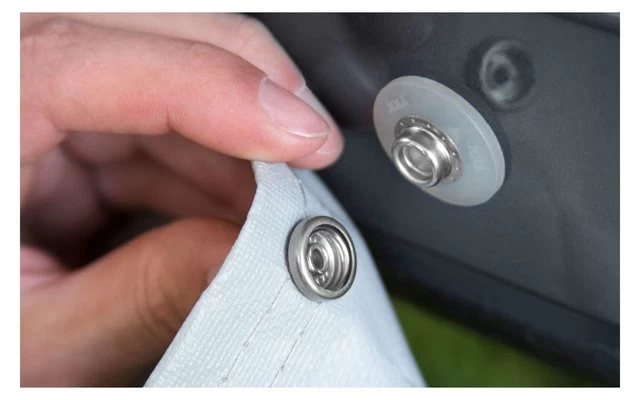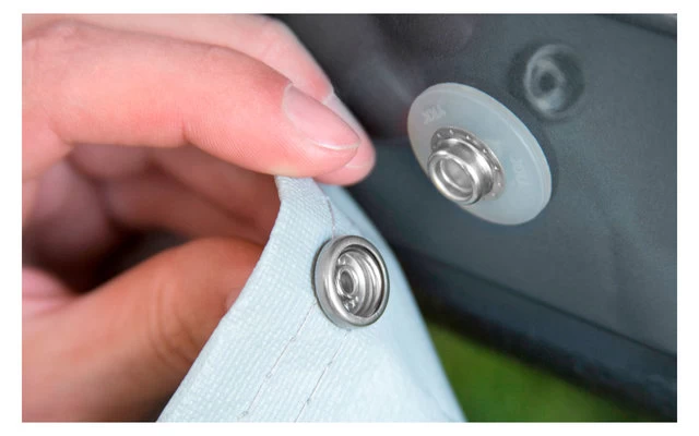 Ein Klemmprofil sorgt fĂŒr die Verbindung der Seitenwand mit dem Markisentuch. Beide Seitenteile sind mit einem ReiĂverschIuss fĂŒr optimale Verbindung zur Vorderwand ausgestattet. Die Profile mit doppelten Gummilippen stellen eine perfekte Abdichtung zwischen Fahrzeugwand und ZeltwĂ€nde her und sorgen fĂŒr optimale Spannung. Die DiagonalstĂŒtzen zwischen Mast- und Klemmprofil bieten ausgezeichnete StabilitĂ€t.