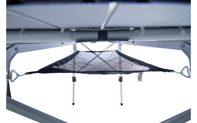 Leichter Aluminiumfalttisch mit Rollplatte und einzeln höhenverstellbaren Beinen, der einfach aufzubauen, Ă€uĂerst stabil und extrem leicht ist. Egal, ob auf unebenen UntergrĂŒnden oder fĂŒr Kindern, damit sie richtig am Tisch sitzen können â der Falttisch »Variety« ist dank seiner stufenlos höhenverstellbaren Tischbeine immer auf der Höhe. DIe robuste Rollplatte aus leichtem Aluminium ist schnell installiert und bietet reichlich Platz fĂŒr bis zu sechs Personen. Nach dem Gebrauch lĂ€sst sich der Campingtisch leicht reinigen und Ă€uĂerst platzsparend zusammenklappen.