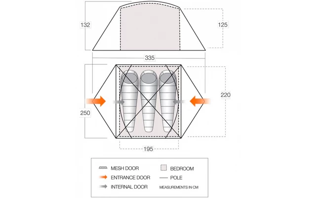Das Tryfan profitiert von einem groĂzĂŒgigen Innenraum mit viel Luftzirkulation, mit 2 extra groĂen Seitenschlitzen und NetztĂŒroptionen.